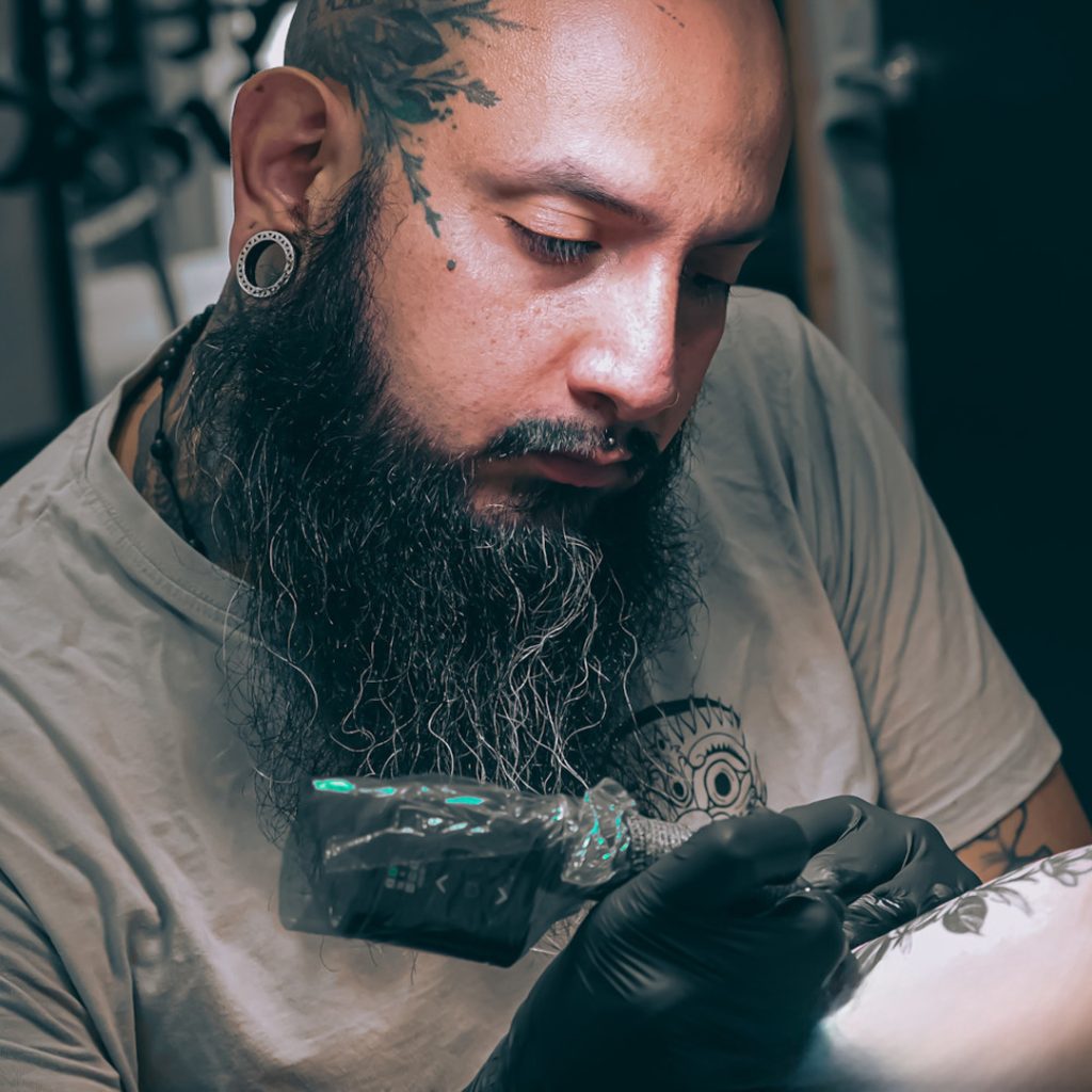 Nascut a Ibagué, Tolima (Colòmbia) el 10 d’abril de 1990 és un artista que regenta a Tremp un estudi de tauatges anomenat Otzzi Studio. El Gustavo es va formar a Colòmbia en belles arts i s’ha especialitzat en murals de gran format i, sobretot, tatuatges.